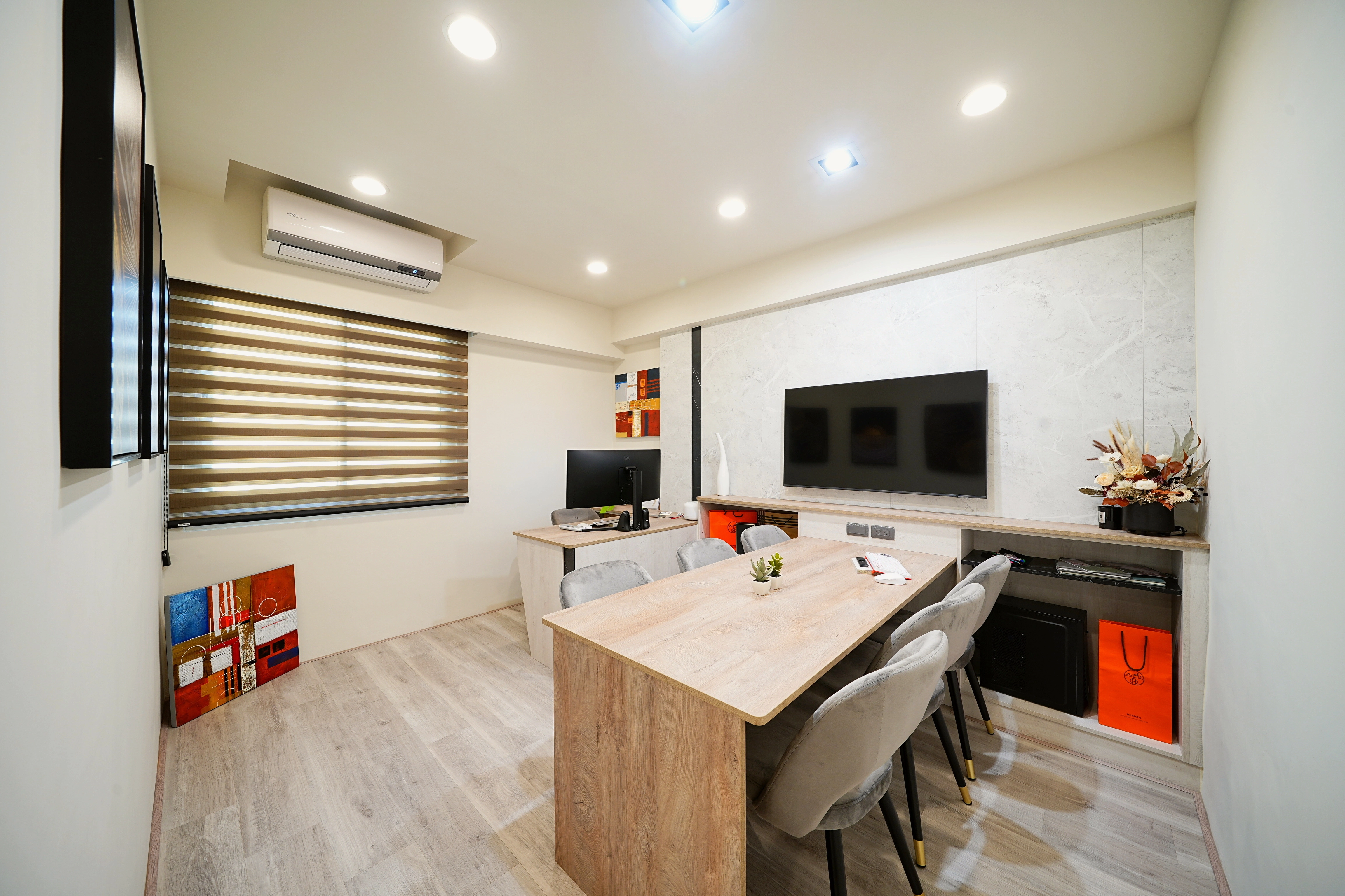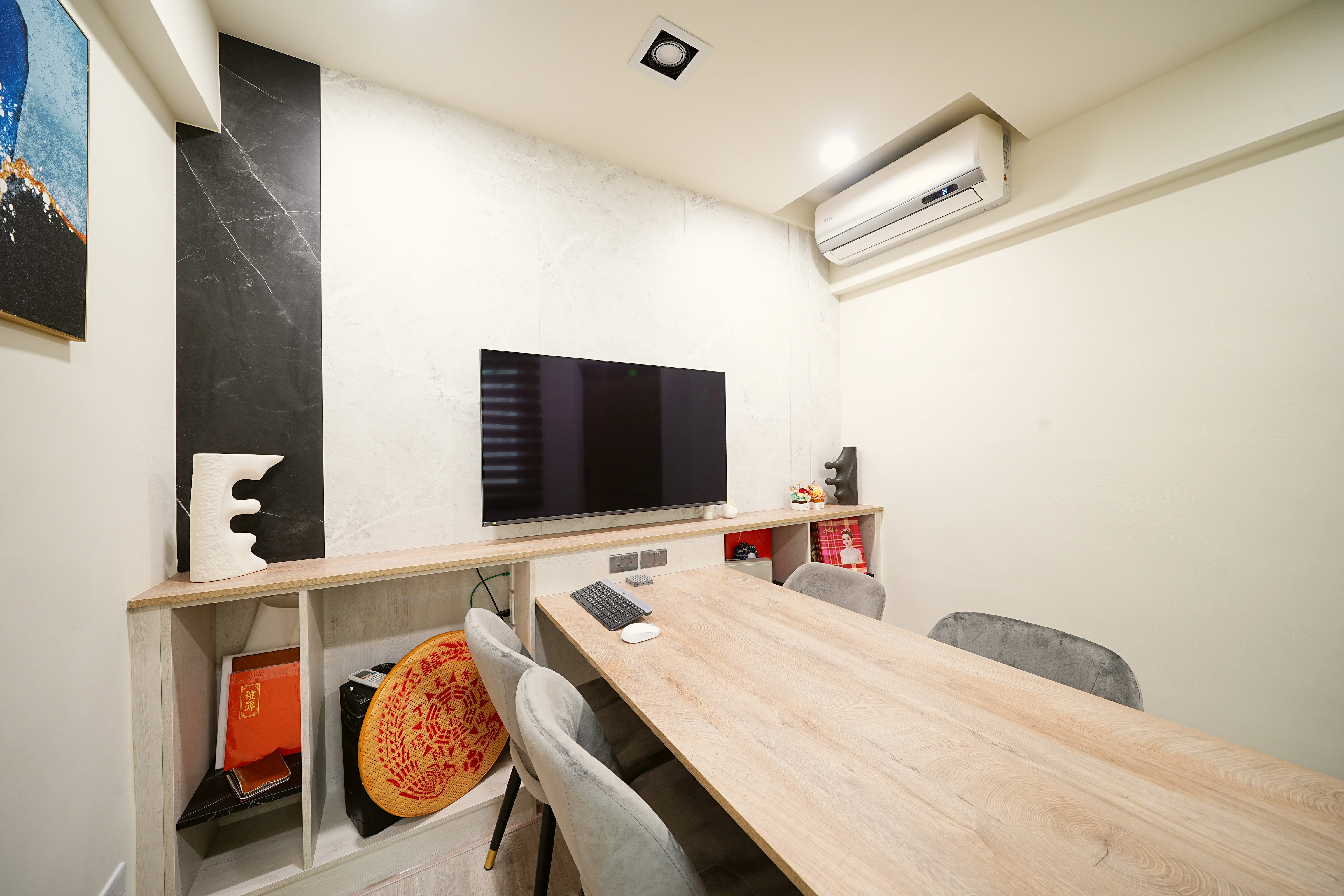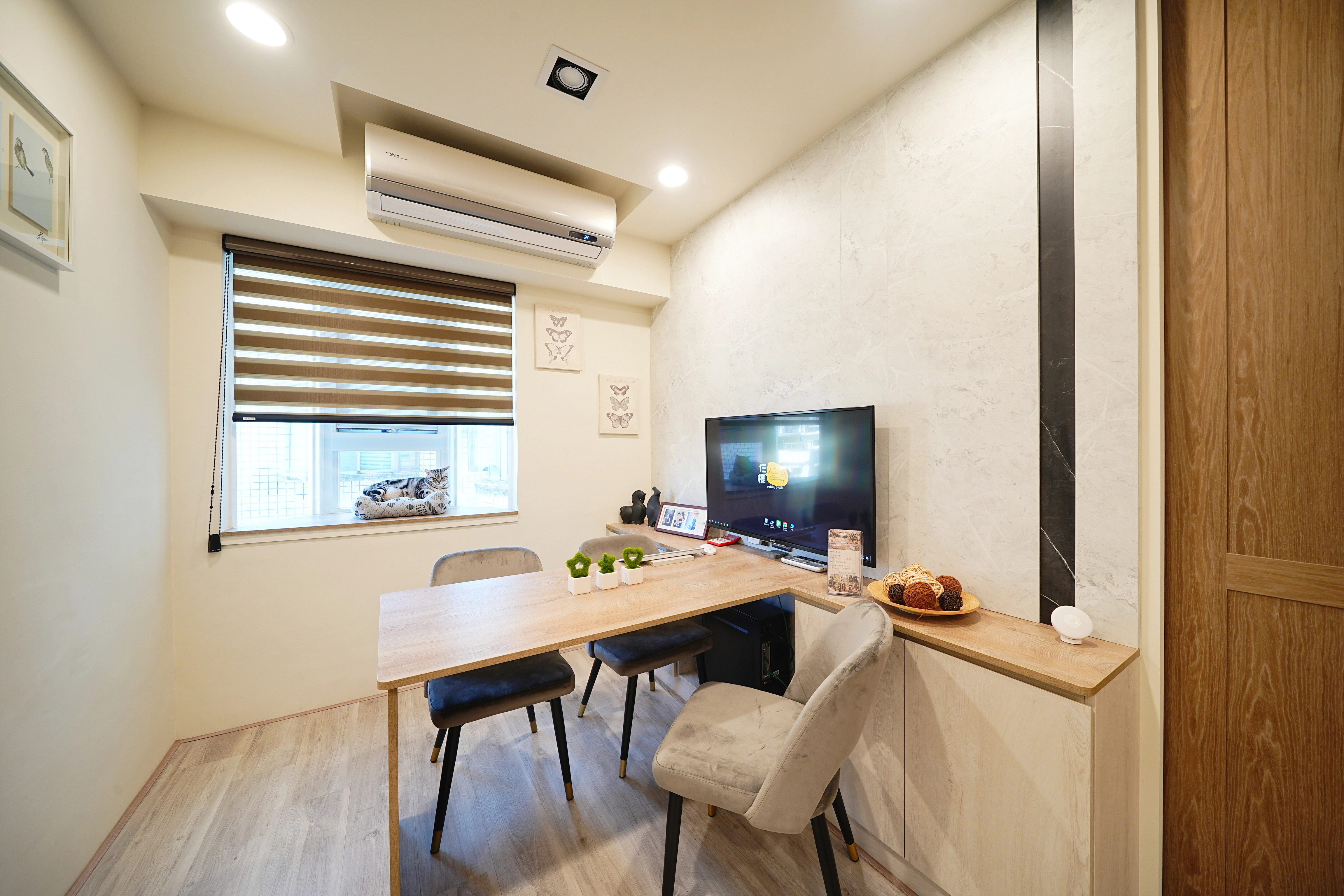 私領域則整合系統書桌與衣櫃,並細膩配置緩衝五金,大幅提升日常使用的手感。德盈堅持選用高品質台南系統家具,從板材選色到工法細節,皆旨在為屋主構築出兼具美感與實用性的美學居所,讓 18 坪小空間也能擁有從容不迫的生活質感。