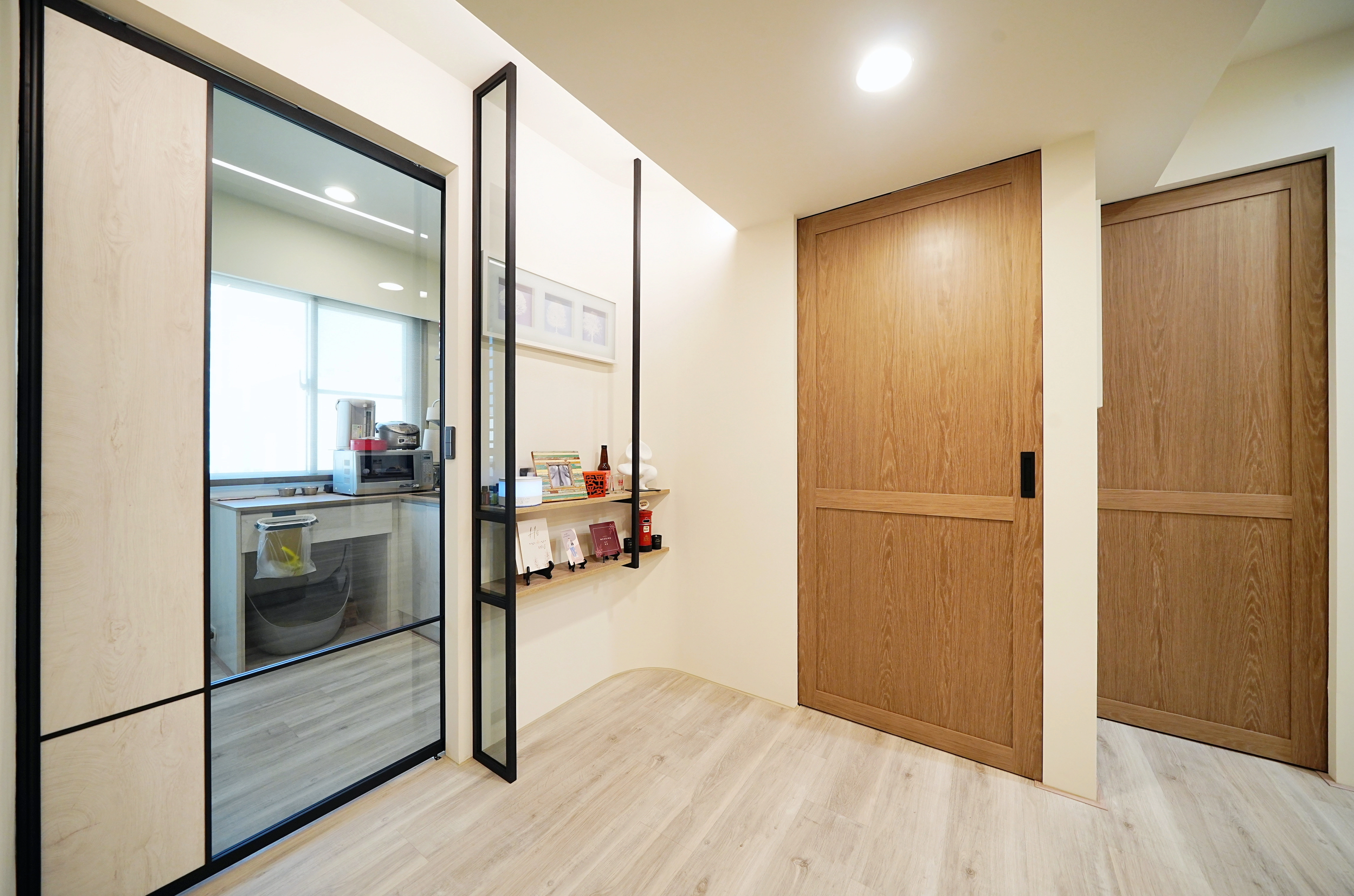 台南系統家具是德盈團隊的指標專長,本案為經典兩房配置,我們從玄關處便開始佈局,運用溫潤木作結合系統鞋櫃,型塑出明亮通透的入戶氛圍。透過精準規劃,將受限的坪數轉化為高效實用的生活場域。