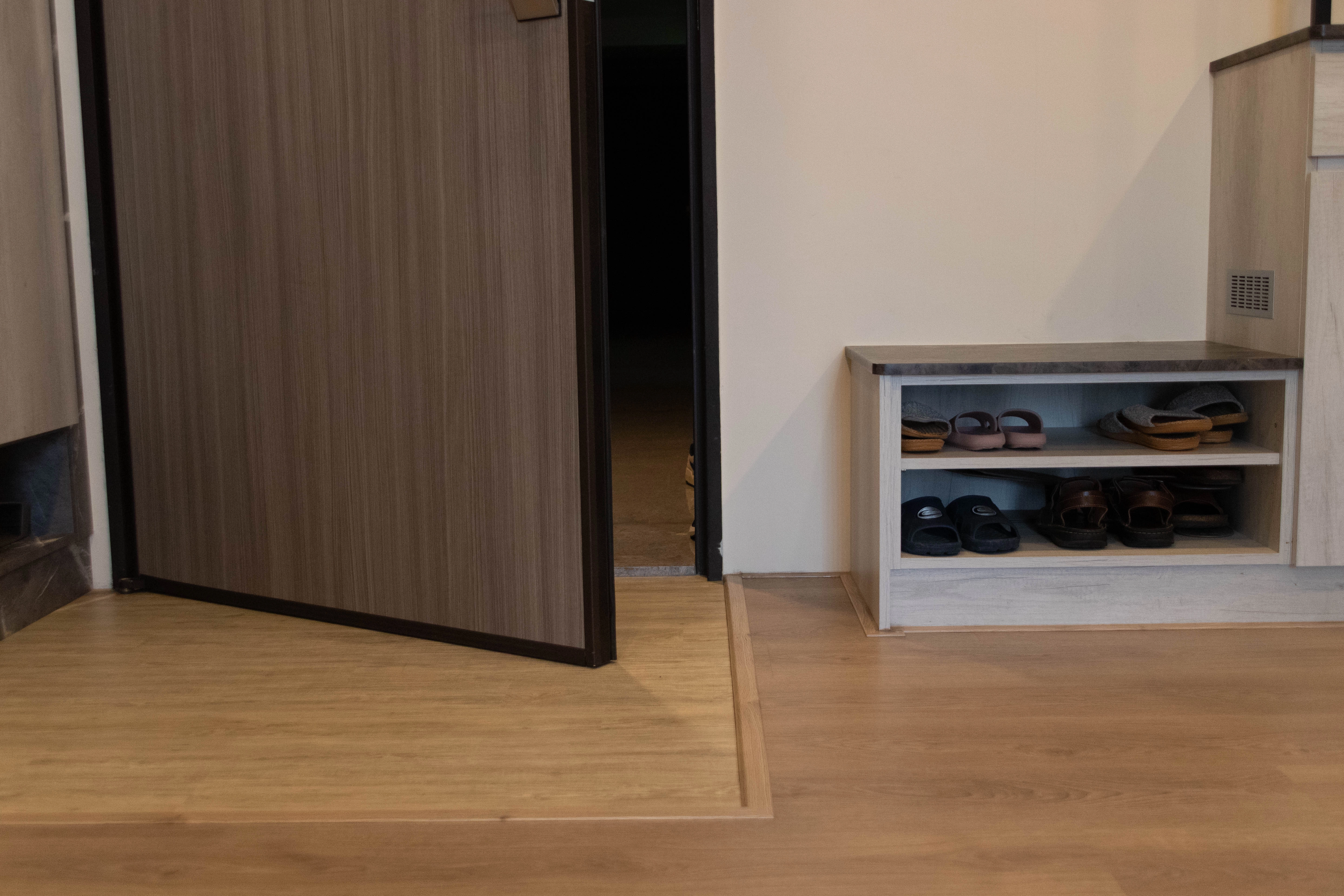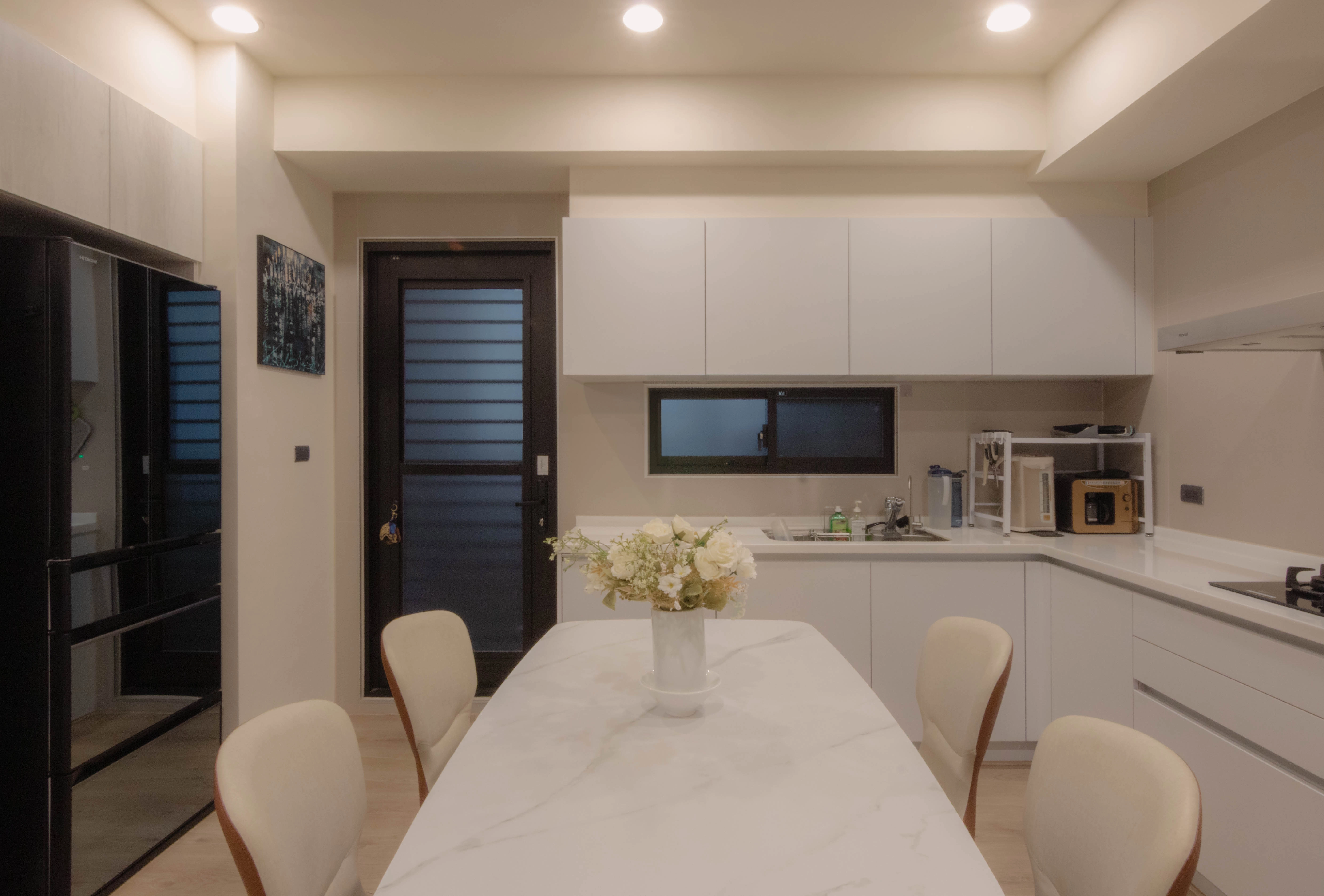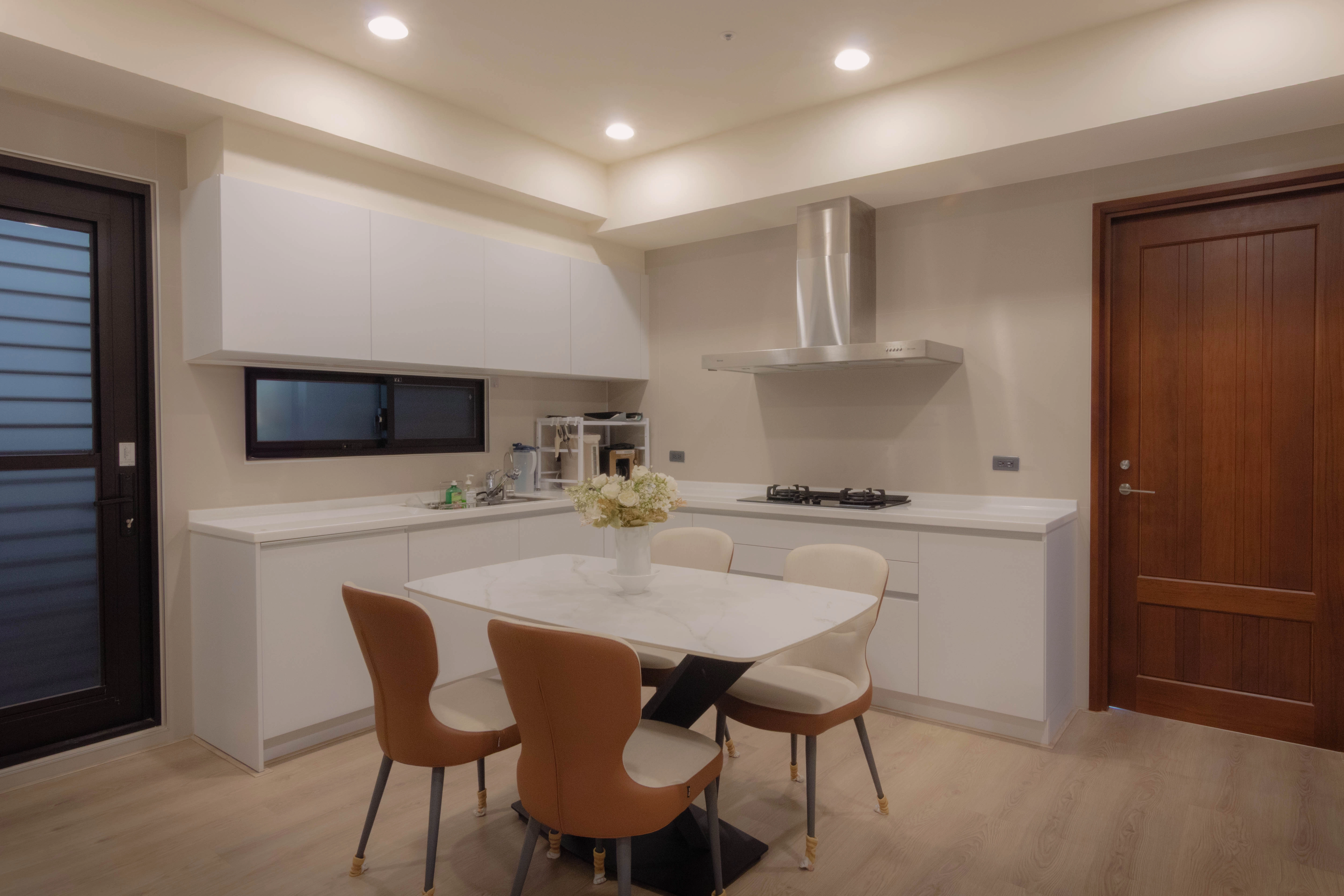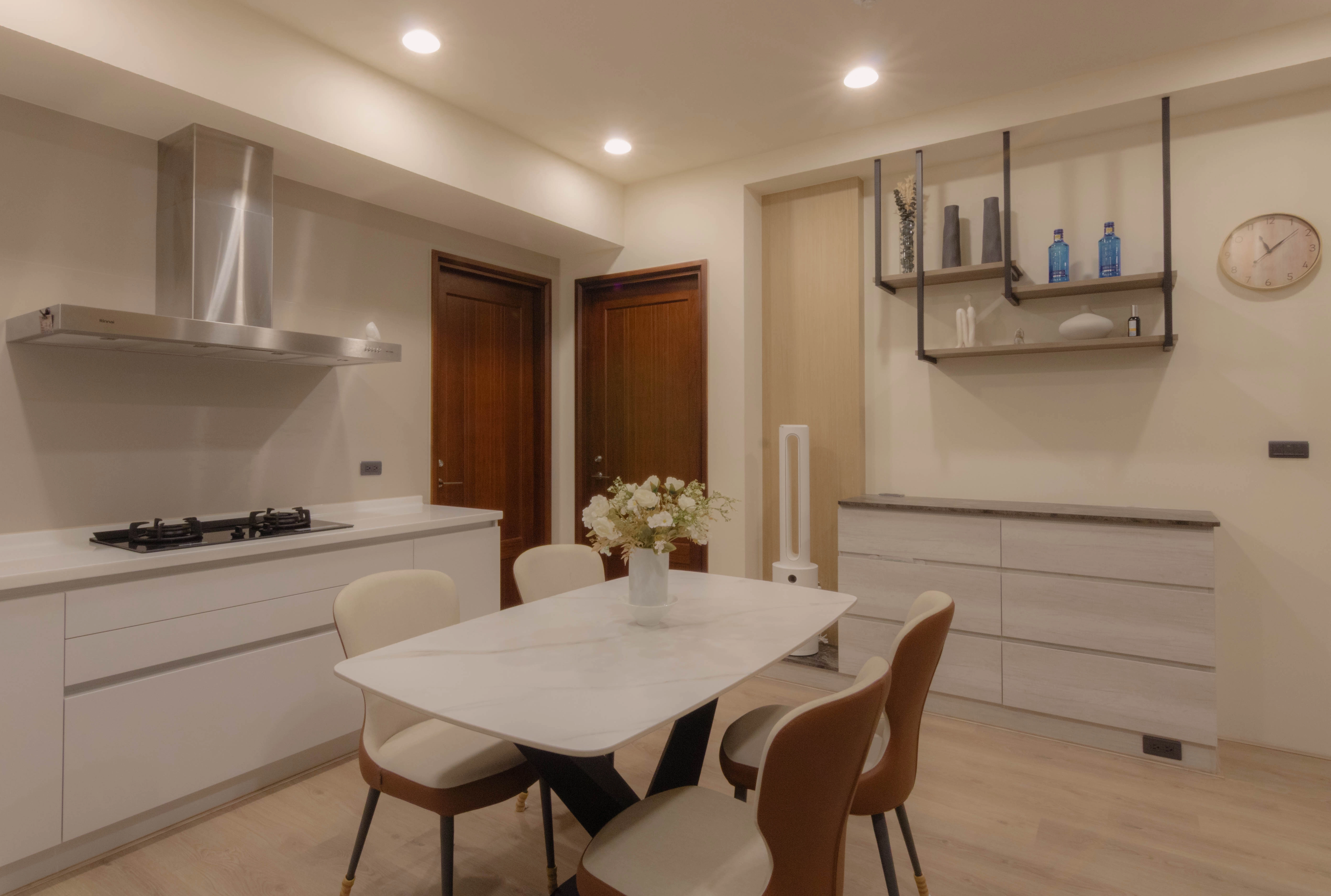 德盈台南室內設計團隊於九份子案例中,展現如何利用系統傢俱為長輩量身打造「安心宅」。從玄關開門高櫃結合玻璃門片起,營造出明亮且好拿取的收納空間;客廳則透過木作沙發半高牆搭配系統板材,巧妙堆疊空間層次感。