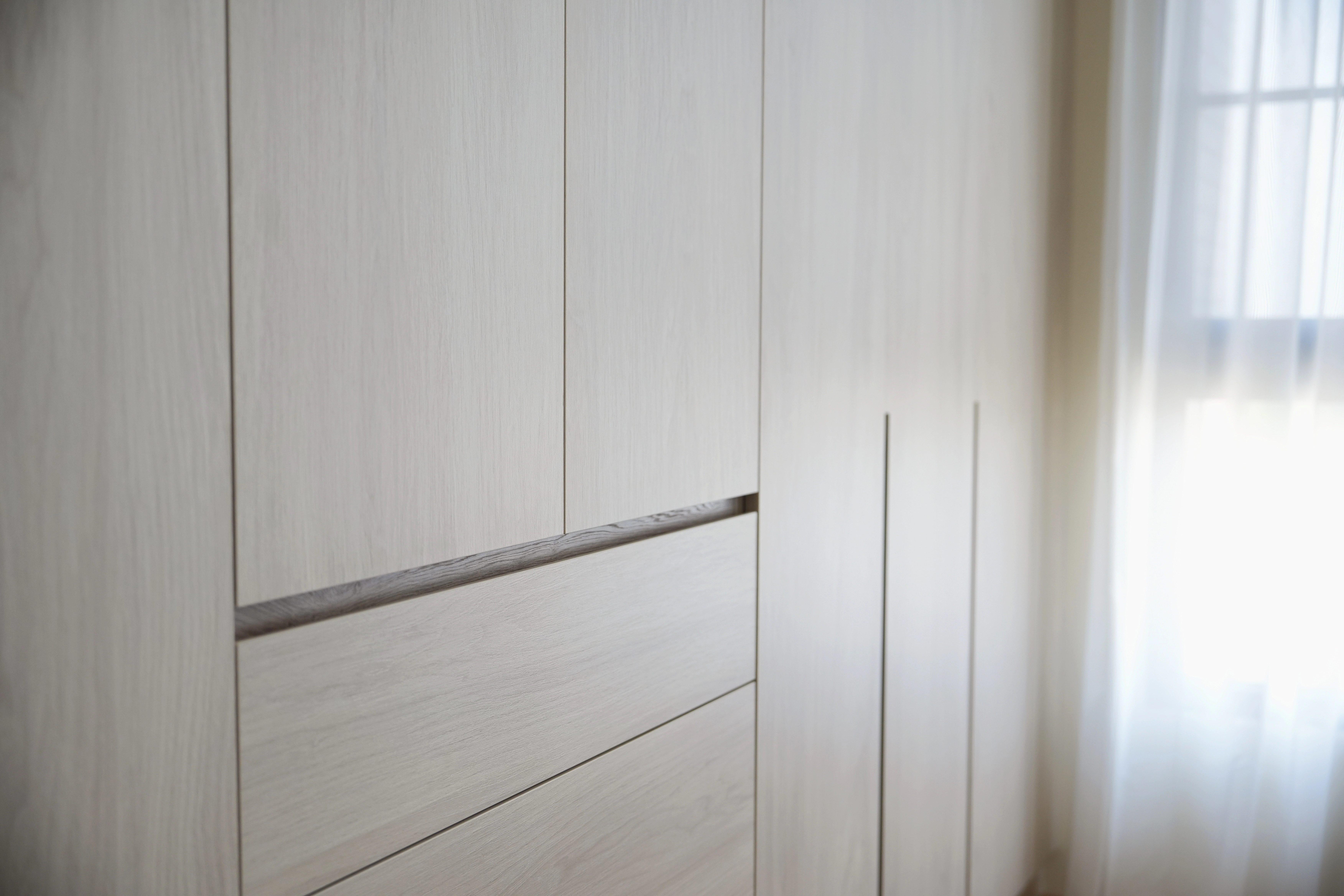 考量到實用便利性,廚房電器櫃配備緩衝拉盤,讓料理過程更加順手;主臥則以大容量系統衣櫃滿足完整收納。此外,客房兼書房配置 L 型書桌組,靈活兼顧工作與小憩需求。德盈致力於讓每一個設計細節都像音符般和諧,透過高品質的台南系統傢俱,為您編織出舒適且富質感的夢想家園。