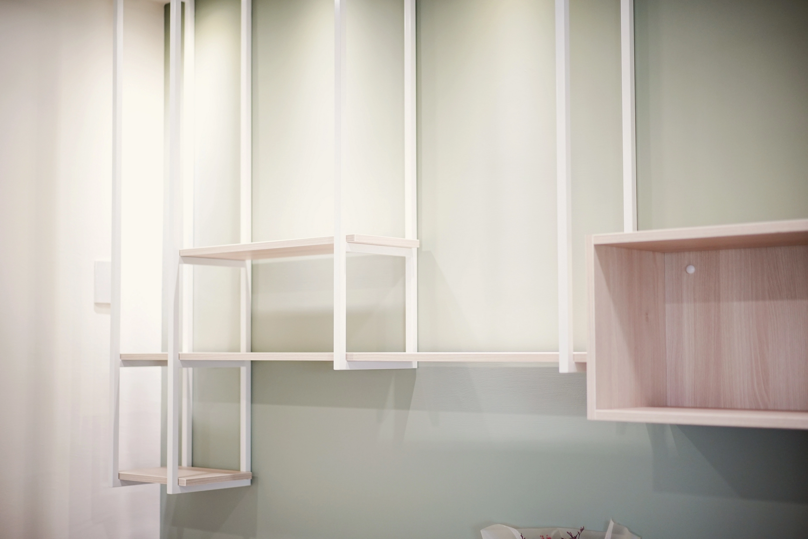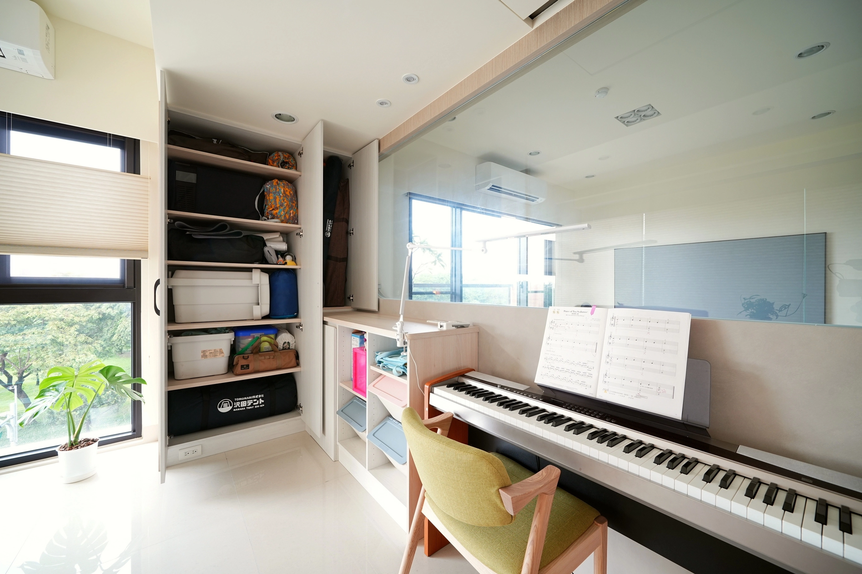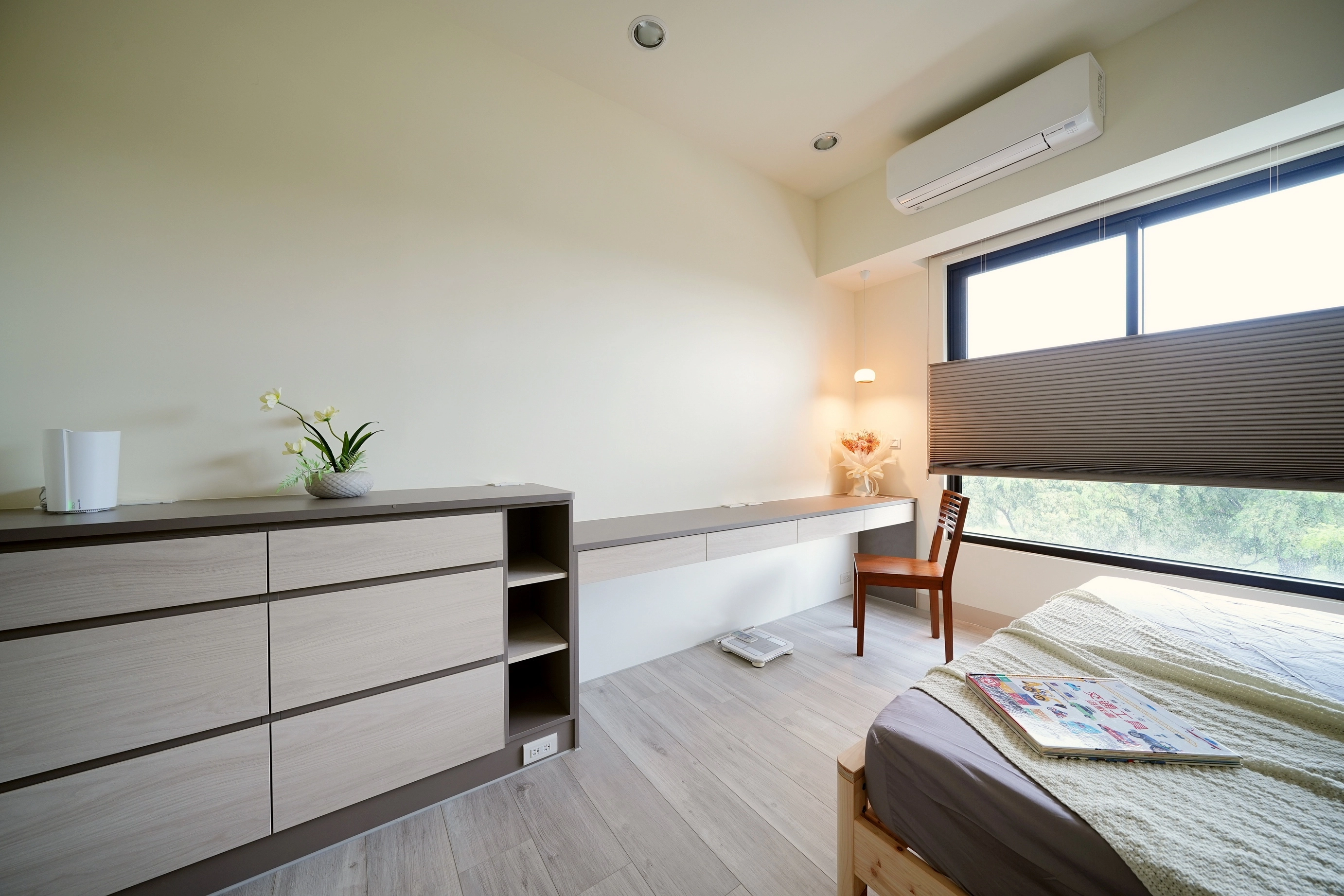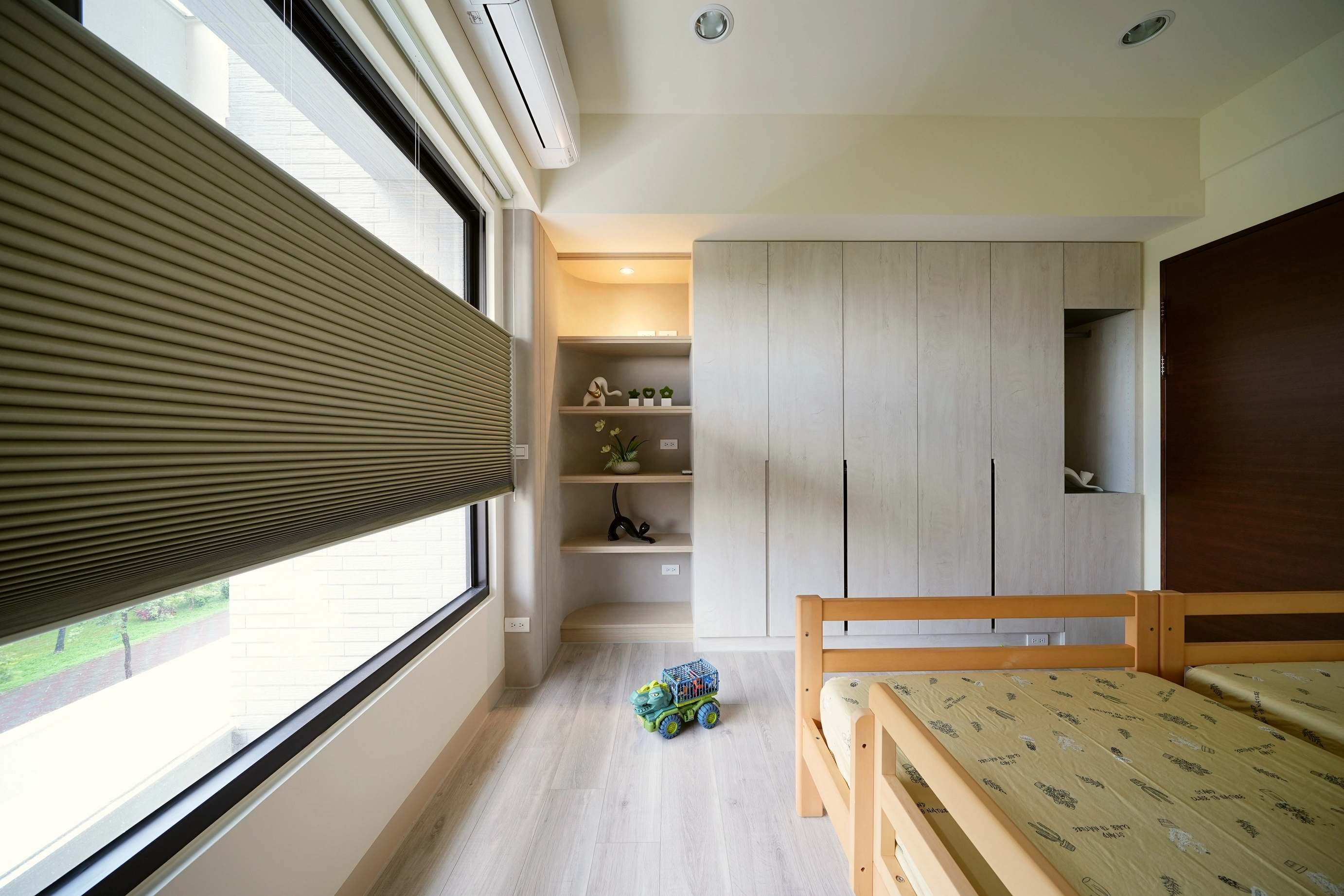 在私領域規劃上,主臥室利用木作隔間牆整合隱藏門設計,將更衣室入口完美隱藏於立面,展現精湛的台南系統櫃設計實力。全屋天花、牆面及門片細節,皆極大化保留木材的原始溫潤質感。德盈專業團隊深耕台南室內設計與系統家具領域,不論是北歐風規劃或九份子區域建案,皆能為您量身打造獨具品味的質感居家。