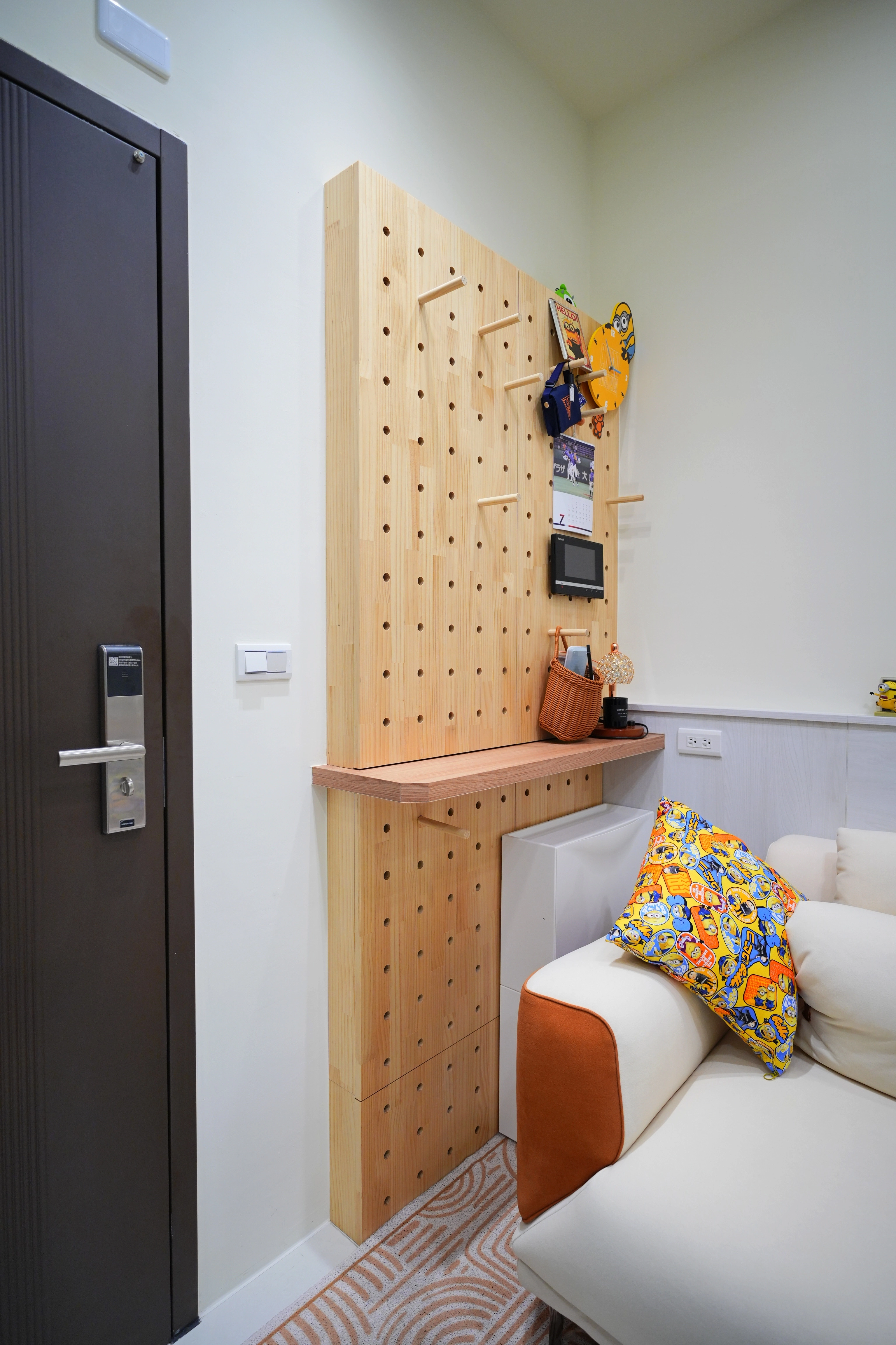 德盈台南室內設計團隊為18坪新成屋注入北歐風情,打造簡約溫馨的居家空間。入口處的義大利塗料電視牆、淺色木質地板與系統鞋櫃,營造出舒適氛圍,洞洞板設計更增添展示與收納機能。我們善用台南系統櫃設計,規劃廚房系統電器櫃與系統冰箱櫃,展現流暢動線與空間輕盈感。