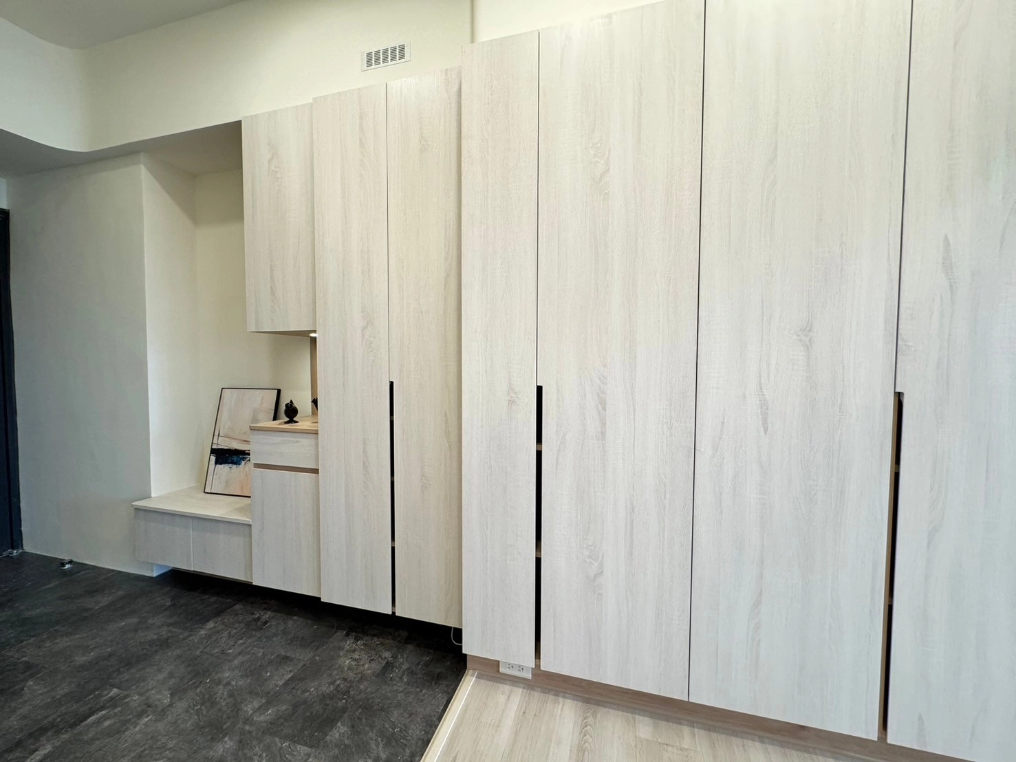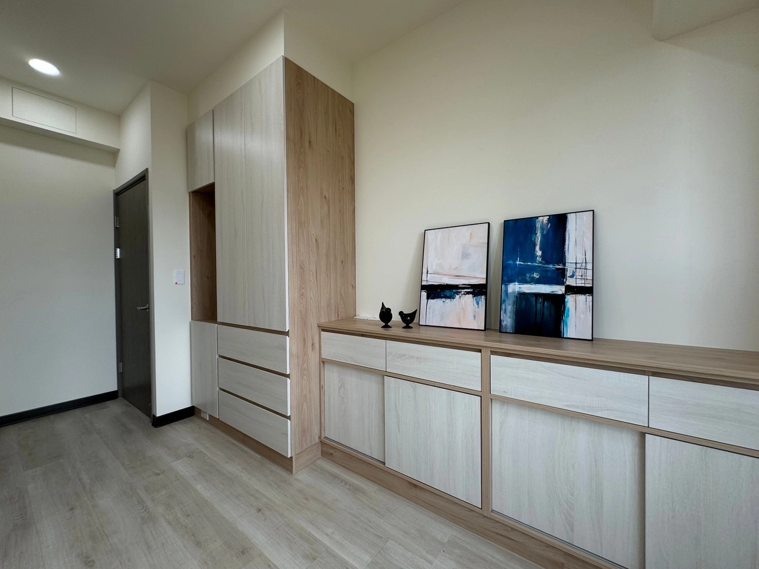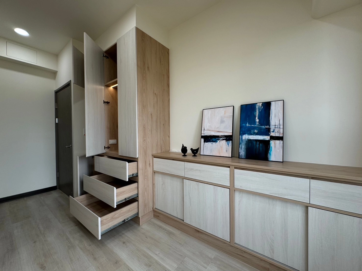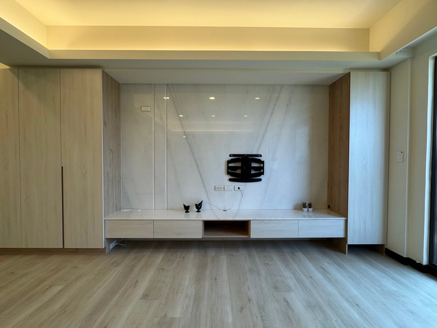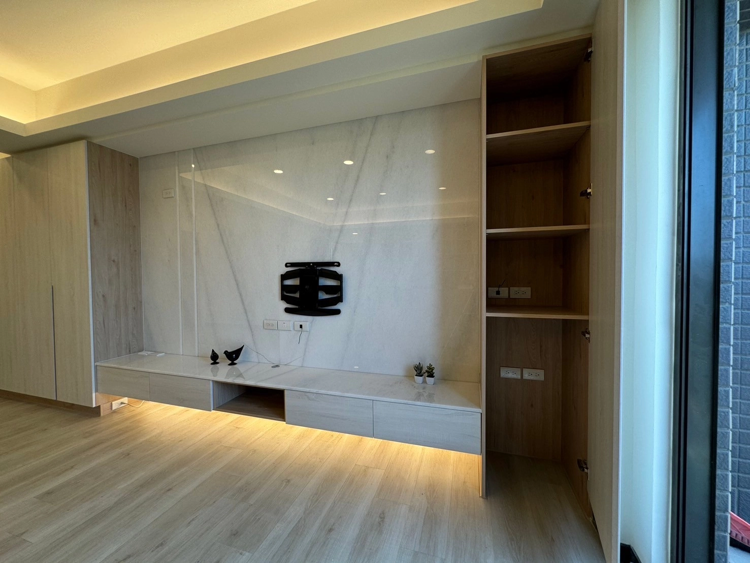 針對居家核心的收納需求,德盈靈活運用系統櫃設計,將立面牆轉化為高效收納區。簡約門片不僅能輕鬆隱藏生活雜物,更能隨時維持空間的俐落美感。此外,透過客製化系統家具與開放式動線規劃,無論是多功能櫃體或造型電視牆,皆能精準貼合屋主的生活習慣。德盈台南室內設計不只追求美觀,更在乎機能與溫度的平衡,為您落實最有質感的理想居家生活。