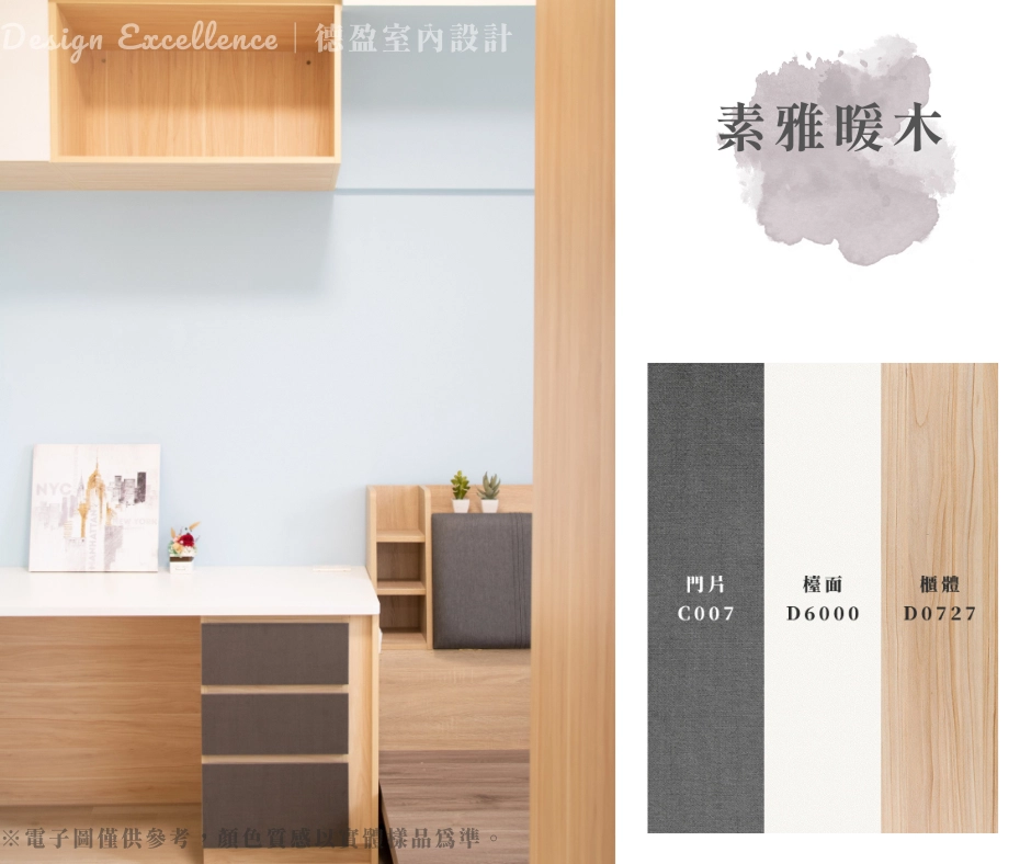 系統板材的顏色和紋理會受螢幕顯示、電子檔案與現場光線(黃/白/自然光)等因素影響而產生色差。因此,圖片僅供參考,最終顏色與質感請務必以門市實體樣品為準。