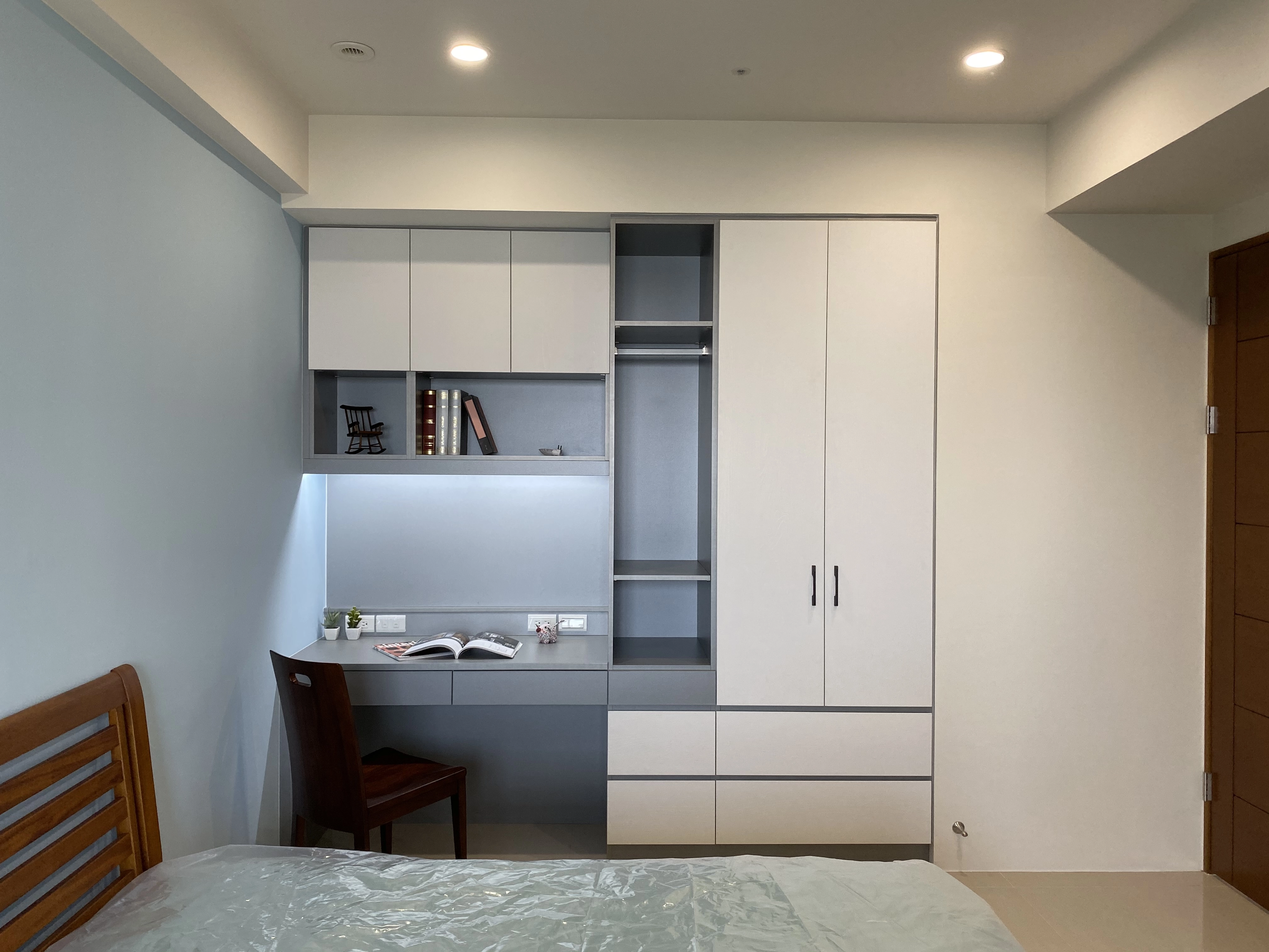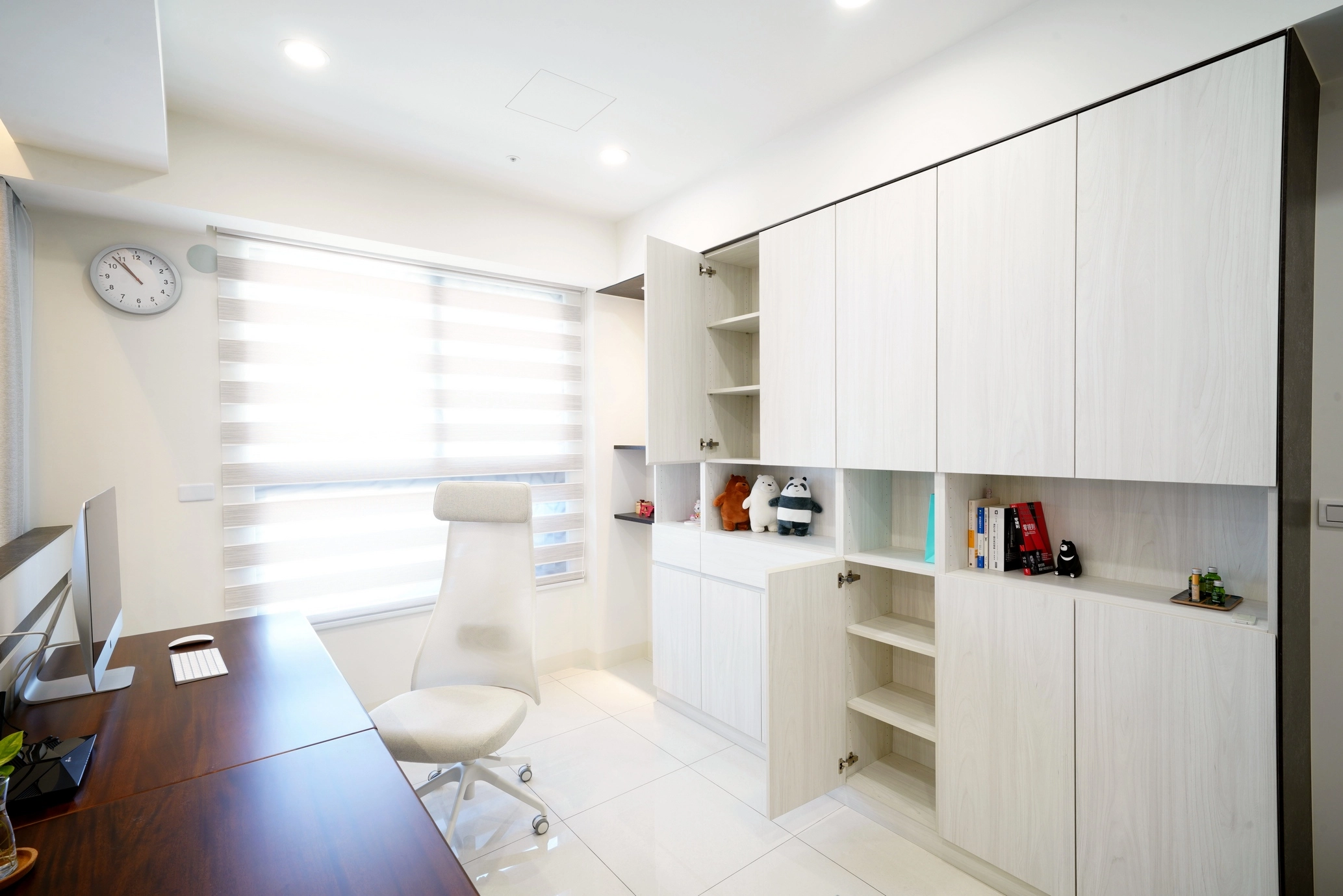 - 櫃體不只能收納,延伸出來就是辦公桌。特別適合小坪數,讓每一寸空間都沒有閒置浪費。